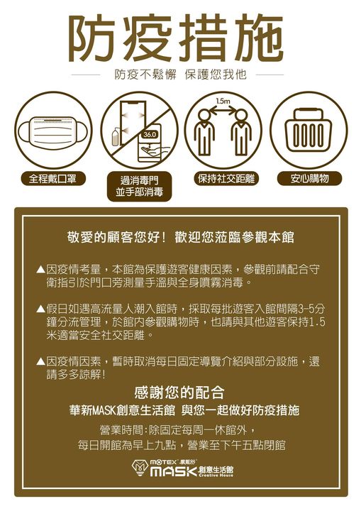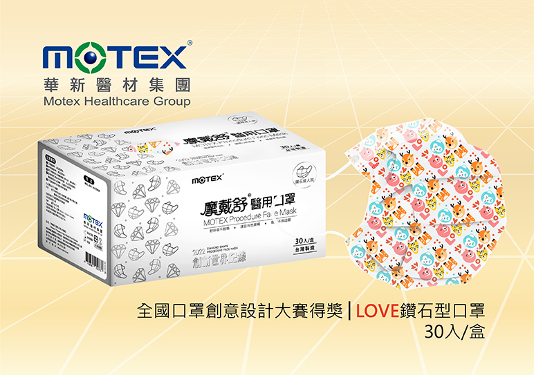 榮獲2018台灣精品獎 MOTEX防霾口罩 具有四項多國專利技術: (1)置入式防漏鼻墊 (2)雙側氣密防漏 (3)超立體鑽石型結構 (4)結合可調式口罩掛帶固定片。 除了強化口罩之包覆性,其密合度更是優於一般N95...
