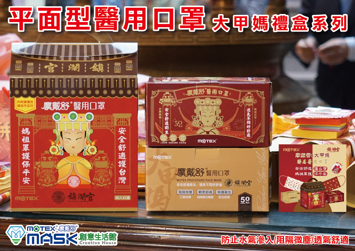 大甲媽禮盒 特點:平面口罩/防止水氣滲入/預防飛沫傳染/透氣舒適有感 款式:大甲媽禮盒系列(紅/白各一盒) 規格:(成人款)紅色 50入 /盒、白色50入/盒、平安符一個;50入/2盒/1大盒 注意事項:...